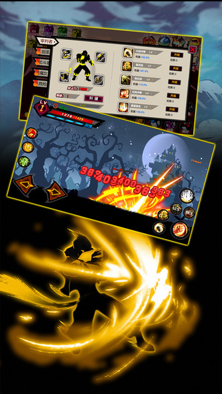 2.暗黑剪影风格斗场景,更加突出技能的特效。