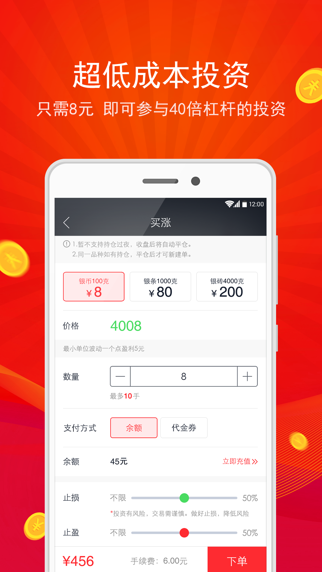 【超低成本投资】 只需8元,即可参与40倍杠杆。