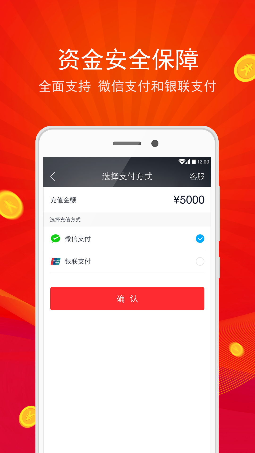 【资金安全保障】 全面支持微信支付和银联支付。