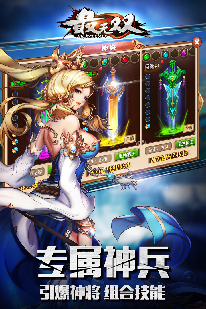 最无双九游版是一款拥有很多创新元素的动作类卡牌游戏,其中卡牌的动作设计也是非常玩法,独特的连招系统,不仅仅可以非常轻松上手,而且也是可以感受到那种非常刺激的打击感受和爽快的操作感,游戏也是创新加入了三国时期题材,同时也是拥有二十多名各具特色的武将设计,都是任你选择的哦,而且在游戏当中的那中策略性战斗模式,会给你带来一场场脑力的挑战,如果你喜欢,还在等什么,让我们一起去冒险吧!