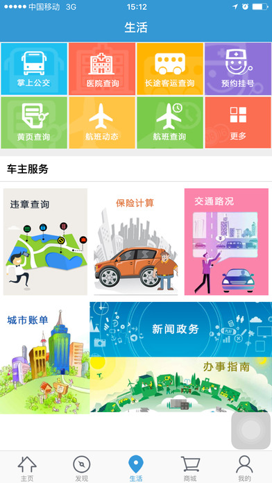 5) 特色功能:附近营业厅网点查询、WLAN热点查询、常用短信指令、个人账户信息等功能