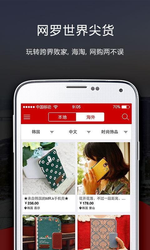 发现:按照用户所在地,根据用户的购买习惯,为您发现您心仪、优质的商品;同时网罗全球时尚尖货,实现掌间海淘。