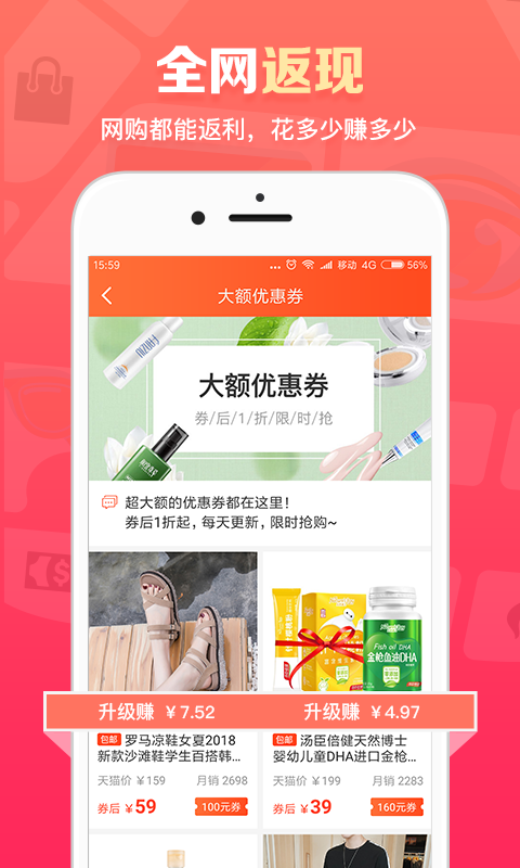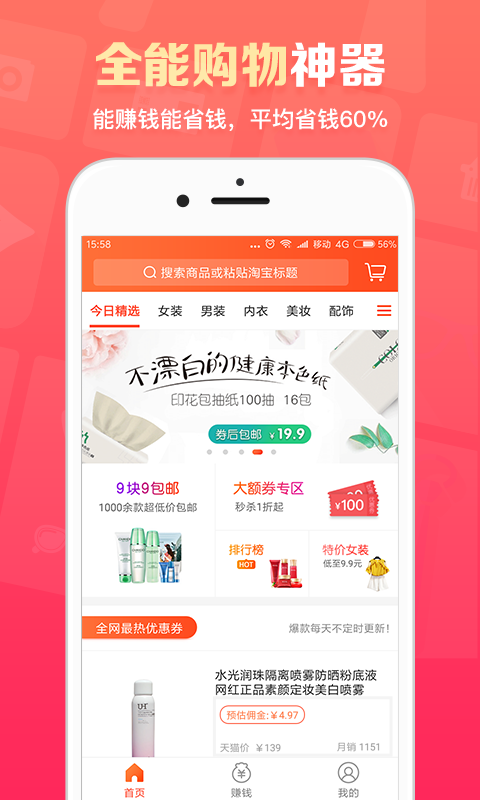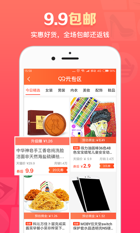 得意淘安卓版是一款一站式购物平台,为您精准推荐潮流商品。进入首页可以查看全网最低最优商品推荐, 精选好货更加贴心,每日折扣享不停,9块9包邮,大额优惠券。