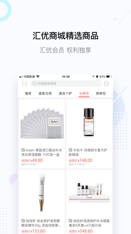 汇优商城安卓版是一款知名的手机商城购物软件,汇优商城安卓客户端为你精选国内外优质好货,丰富的商品种类,人性化的购物推荐功能,让你随时随地享受限时优惠购物,赶快来52z飞翔下载站下载体验吧!
