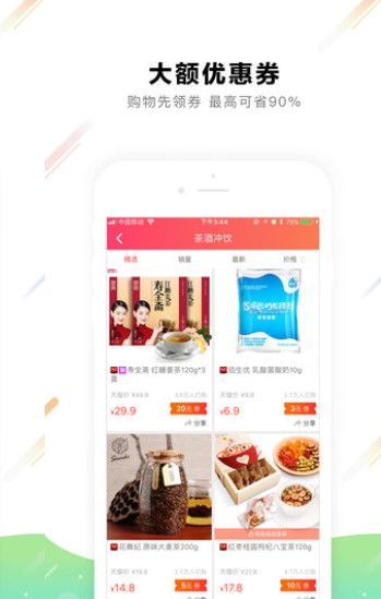 1、精选优惠券:每天精选淘宝优惠券,折扣力度非常大,低至运费价。