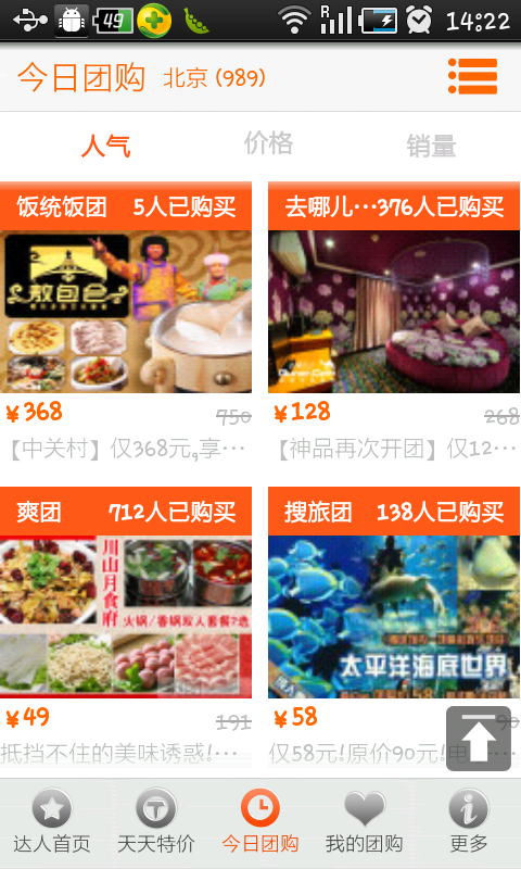 团购达人为您提供近千个城市的万款精品团购服务,自动显示您附近的团购活动,即团即用。随时随地用手机安全快捷支付,享受移动团购带给您的生活便利。我们支持android2.0以上智能手机。